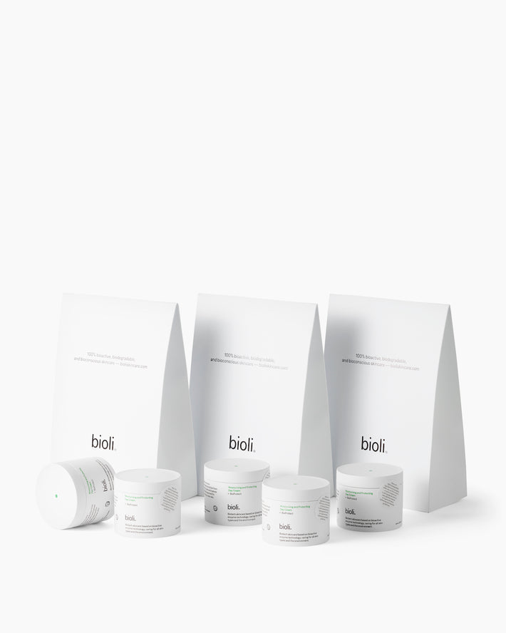 Moving beyond traditional natural and synthetic formulations, our skincare harnesses the power of biotech-derived ingredients. Carefully developed in the lab using advanced biotechnological processes, our skincare features ingredients with proven, targeted efficacy—without compromising the planet. Each one is backed by life cycle analysis, evaluating environmental impact before use, during application, and after rinse-off. Below are three of our standout ingredients. Explore the full ingredient list to learn more.